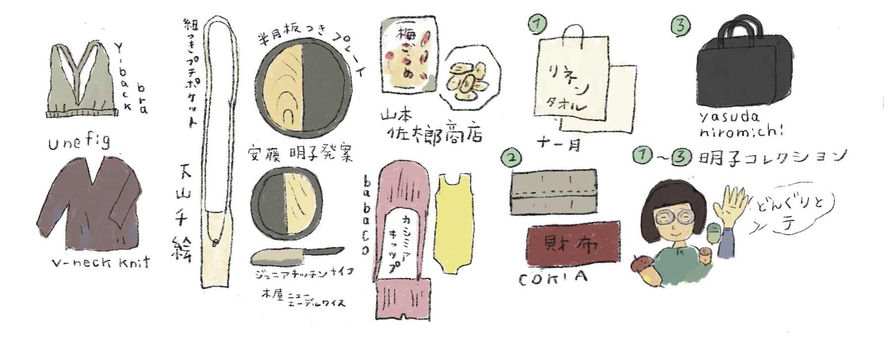 ひとり遊びやガラクタを拾い何かにできないか考え工夫するのが好きな子どもでした。船橋グリーンハイツに住んでいた時は南海堂という本屋さんでもあり、文房具や工作のパーツがたくさん売っているお店に入り浸るのが好きでした。また店主のおじさんが美しく包装する手つきを見るのも好きでした。親友とモンチッチの服を縫って遊びました。毎年夏休みに訪れる西宮の祖母の家(戦前の日本家屋)が大好きで、夏、建具が夏用に変わるのと同じように、湯上がりタオルはガーゼになり、その思い出から太番手タオルシリーズが生まれました。