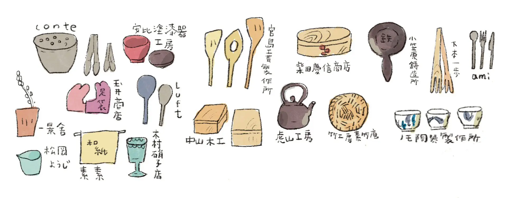 知り合い経由で雑誌関係者と出会い、雑誌に関わる仕事も受けるようになる。工業技術センターなどにも知人ができ、産地アドバイザーやどきどき大学の講師なども務めるようになる。松屋銀座「銀座・手仕事直売所」は第一回の2009年から10年間企画に参加。六本木LIVING MOTIF「日本の道具」展の企画協力は11年続けている。新潟・燕のステンレスの調理道具「conte」アドバイザー。