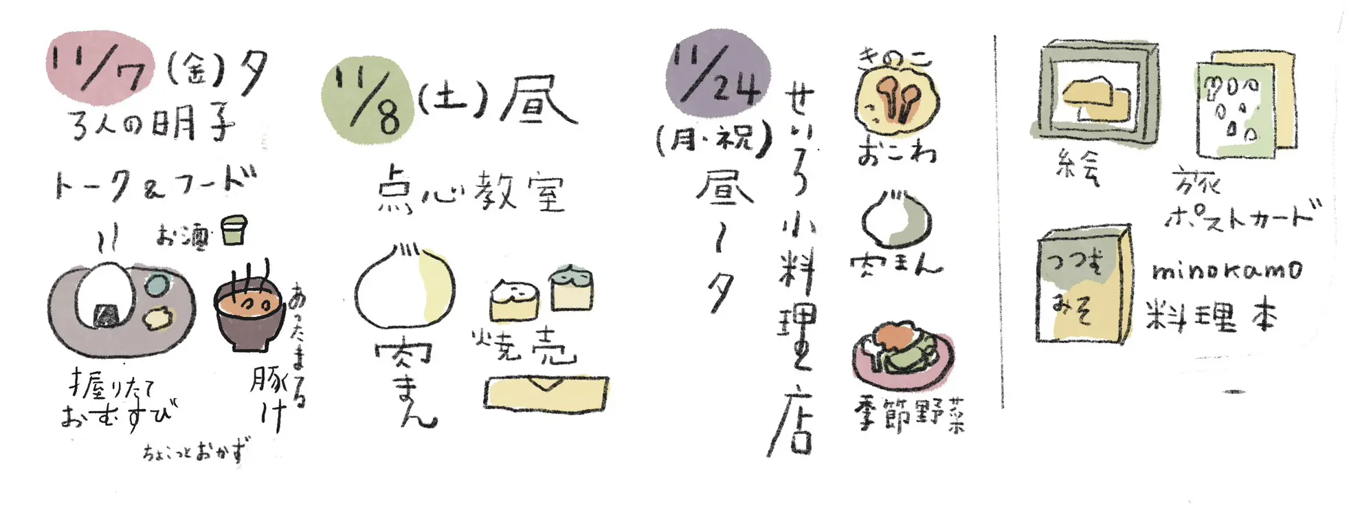 11.7(金), 11.9(日), 11.24(月祝)